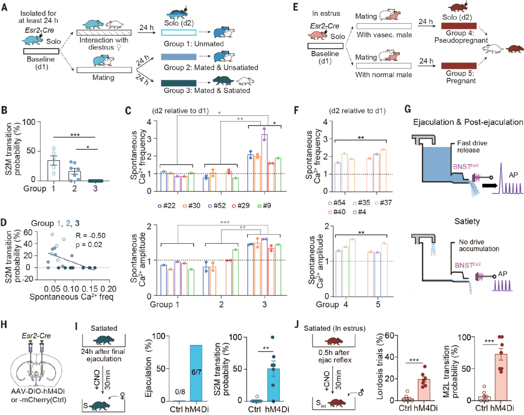 至此,研究者确定,过度兴奋的BNSTEsr2神经元能够持续地编码两性动物的性饱足状态。