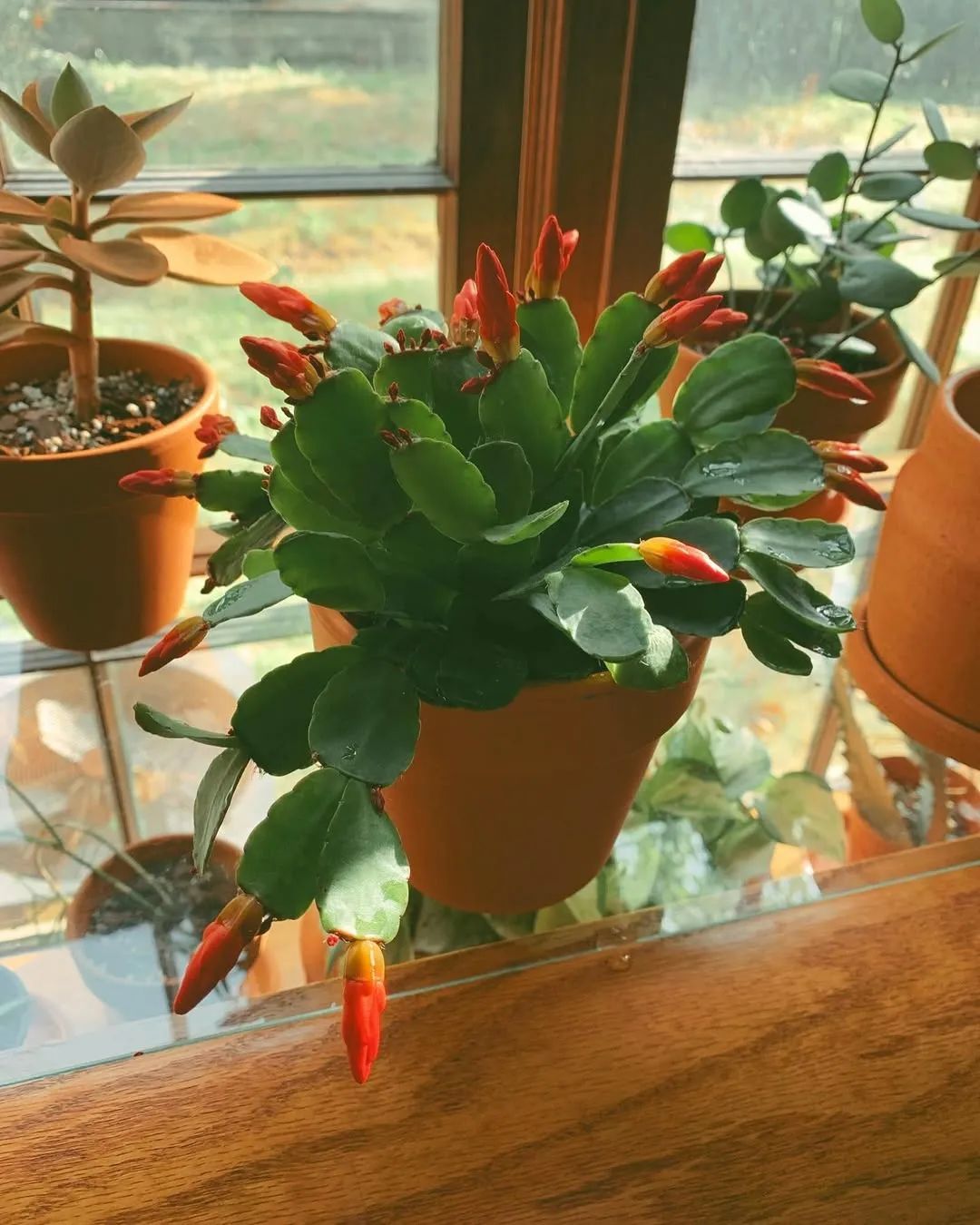 在扦插期间,就是保证盆土完全干透了,再给它浇水,养在有适当散射光的位置。大概三四周之后就会重新生根发芽了。