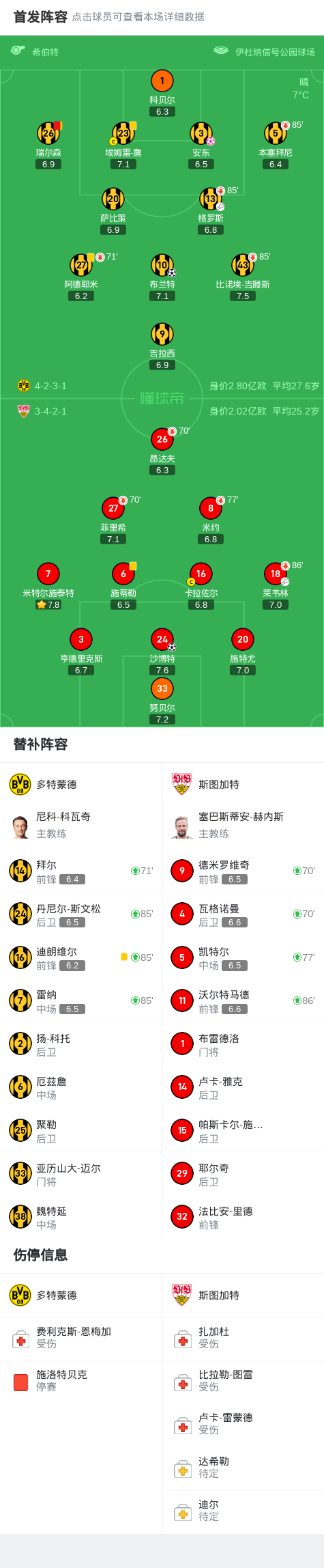 第71分钟,多特换人,阿德耶米被换下,拜尔登场
