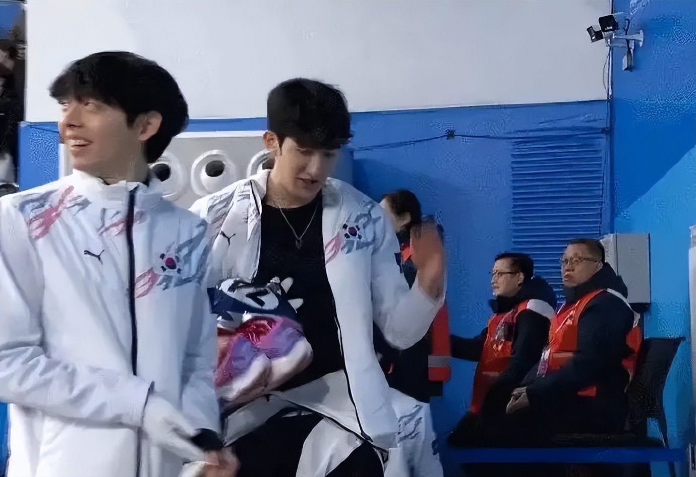 比赛结束后,韩国队在场边有说有笑。