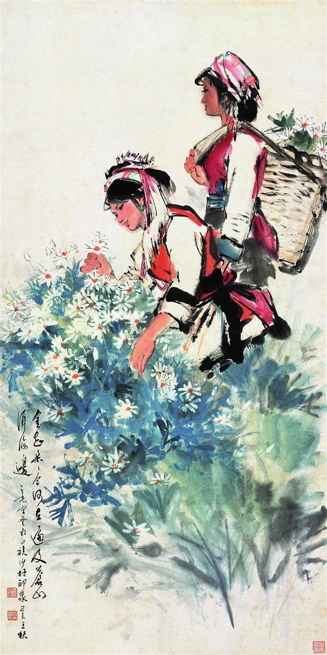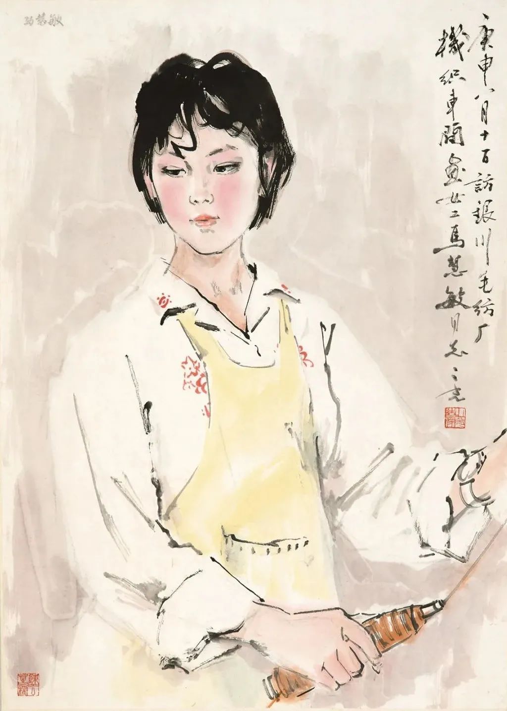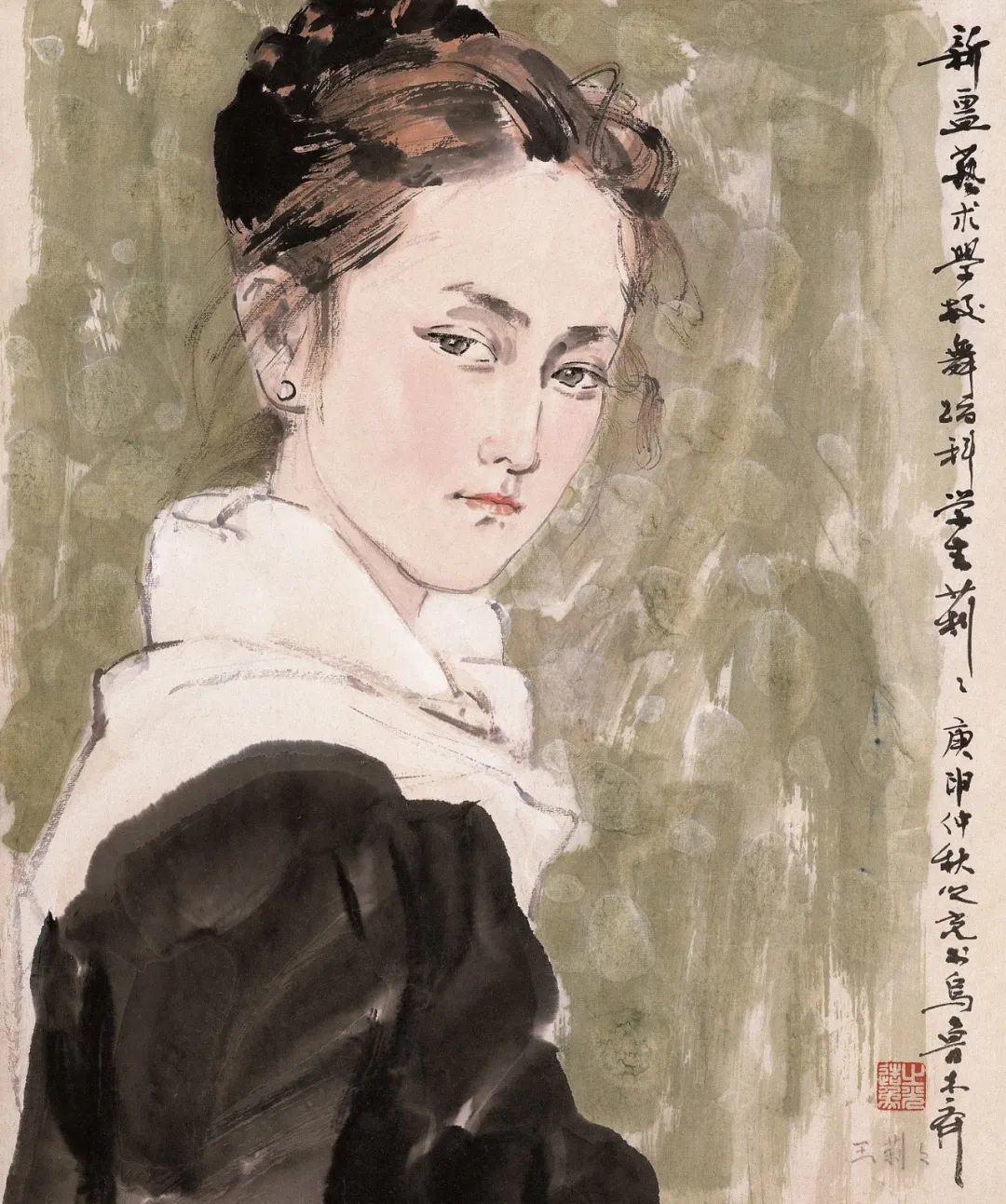 人物写生时为了加强人物的本质,与山水画家写生时重新安排山河一样,人的构图处理也可以运用调度与想象。我在写生《藏族青年阿珍》时,感觉他横坐在长板凳上的动作极似骑在马背上的动作,于是,我将凳子想象成马背,背景的雪山也是虚构的,因为这样可以使人物与环境协调。又如画《公社书记》时,也是在室内写生人物的,景是后来对照秧田补写的,这样通过写生的真实感来加强描绘对象的感染力。由此可见,毛笔写生可以与构图练习结合起来训练,这样的写生就具有创作的因素。从生活到艺术的升华过程,可以从郑板桥谈画竹的经验得到启示。他说,胸中之竹并不是眼中之竹,“意在笔先者,定则也;趣在法外者,化机也”。他很好地说明了眼、心、手三者的辩证关系,与机械地模拟对象的自然主义是格格不入的。