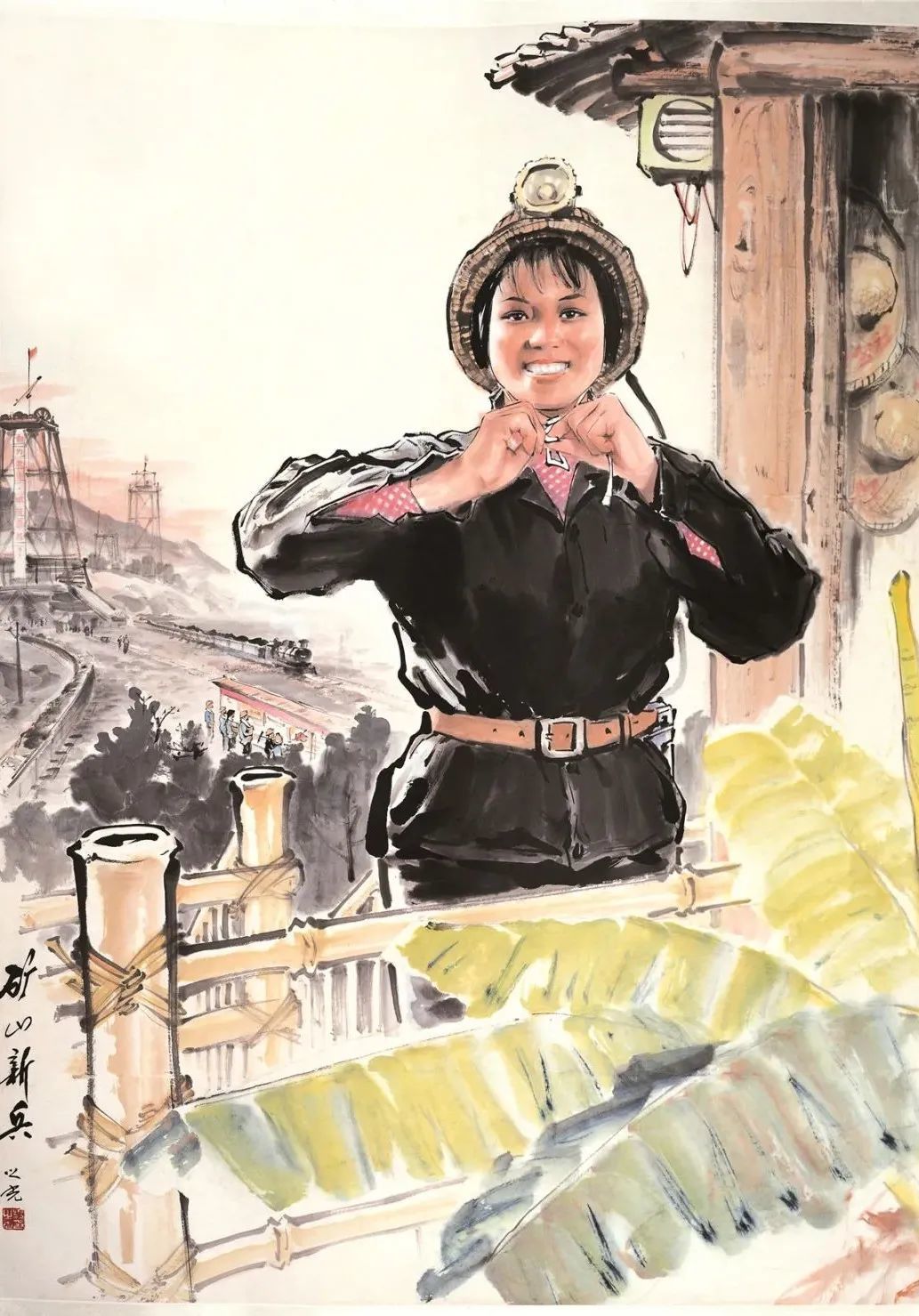 用毛笔写生去收集创作素材的优越性也是别的工具所不具有的,因为毛笔画的素材不仅能作形象参考,还能作笔墨处理参考。如为了创作《红日照征途》一画中毛主席身边的湖南农民的形象,我去湖南文家市等地画了七八张同样角度的青年农民毛笔写生,这些素材不仅给我提供了人物形象的参考,而且还提供了如何用笔墨去塑造形象的笔墨技法参考。如面部五官用线的变化,表现肌肉的皴擦,以及黑上衣领的没骨法与蓝包袱的勾线法之对比,这些笔墨技法都是从面对描画对象时的即时感受中提炼出来的,故笔墨变化一气呵成,比较自然。这些有利因素在我创作正稿时帮了不少忙。