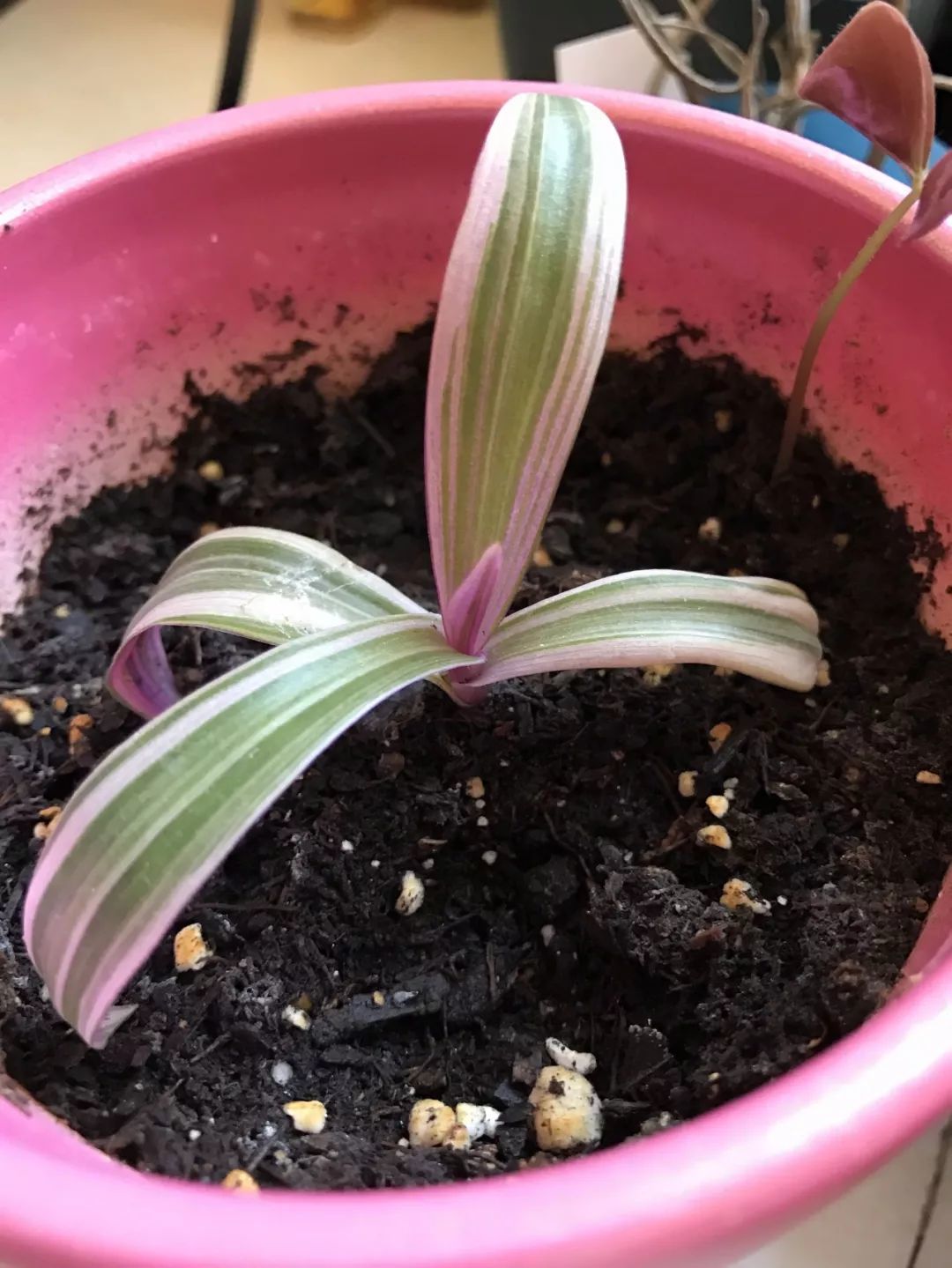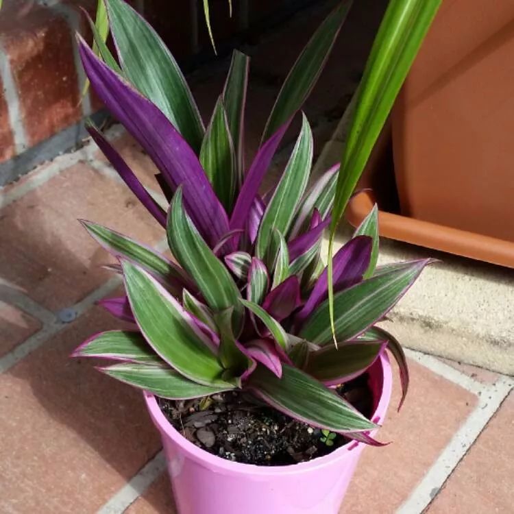 上面是三色紫背万年青 Tradescantia spathacea 'Tricolor'