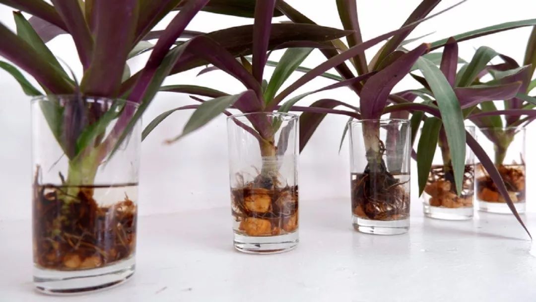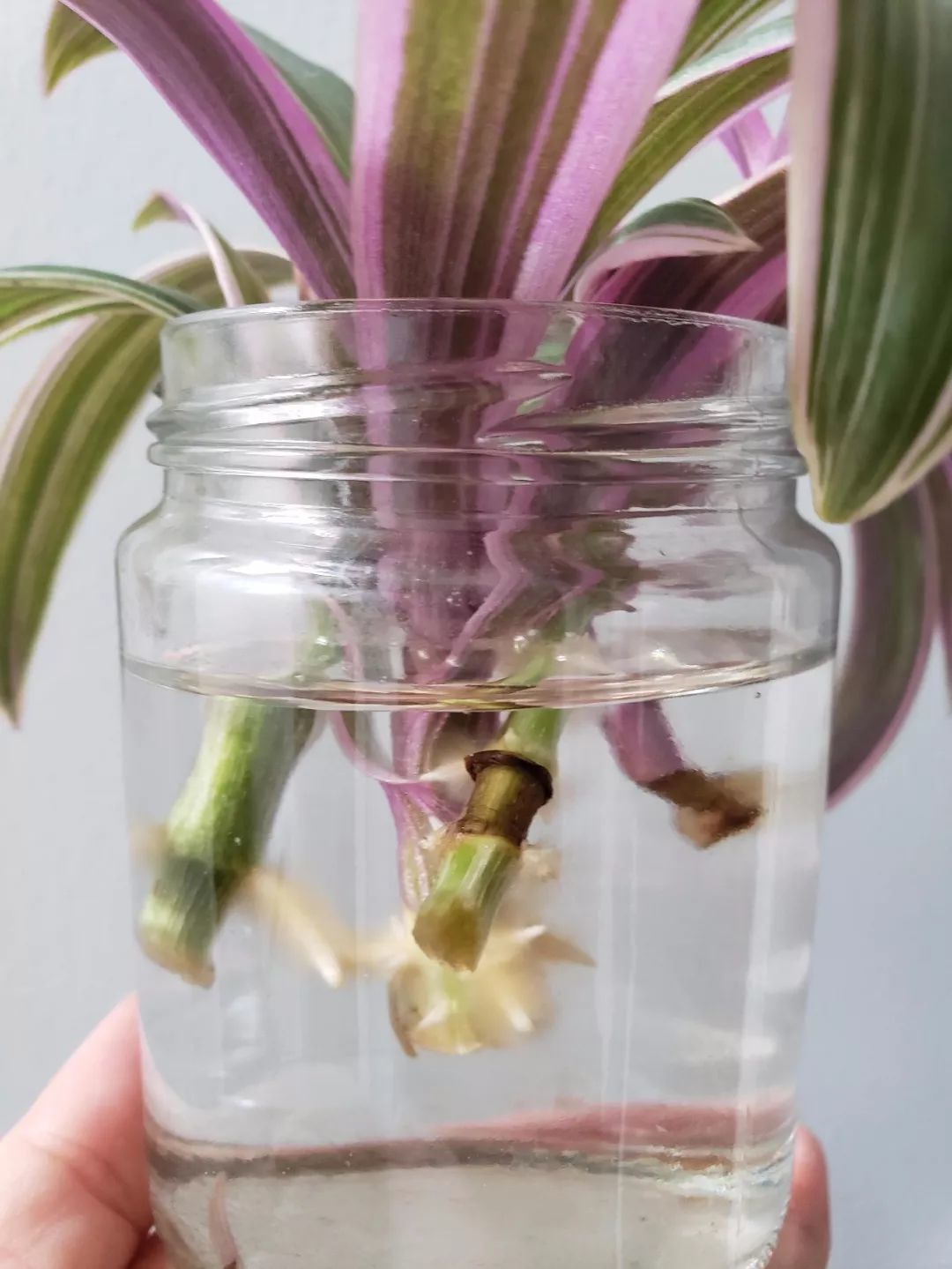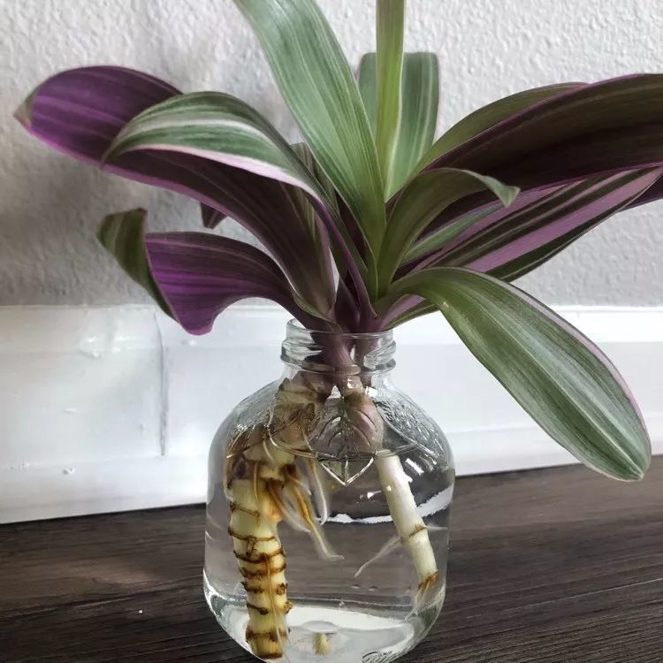 现在还有很多人喜欢水培扦插紫背万年青,就是将它的枝条剪下来之后,去掉底部的叶子,之后直接用一个透明的容器,水培养护大概三五天左右就能长出根系了。