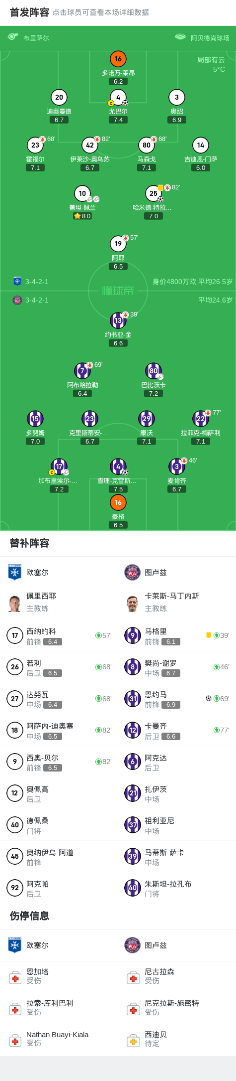 第73分钟,欧塞尔球员盖坦-佩兰助攻哈米德-特拉奥雷打入一球。