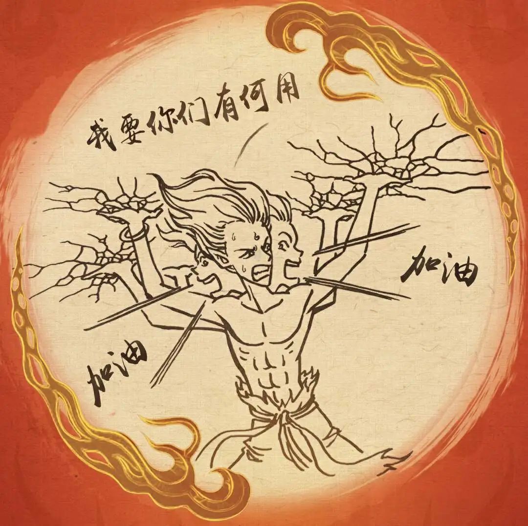 回到今年春节档出现哪吒的两部影片上,《哪吒2》电影官方微博在第一部上映的期间发布过一张哪吒三头六臂的手绘图,重现了哪吒托举冰盖的名场面,或许是六条胳膊已经够用,也或许是八条胳膊太难画,才将电影中的哪吒设计成了六臂。