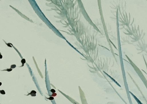 于是,1961年,他们决定制作水墨动画《小蝌蚪找妈妈》。这个故事本是科普童话,人人都知道,甚至成了小学课文。