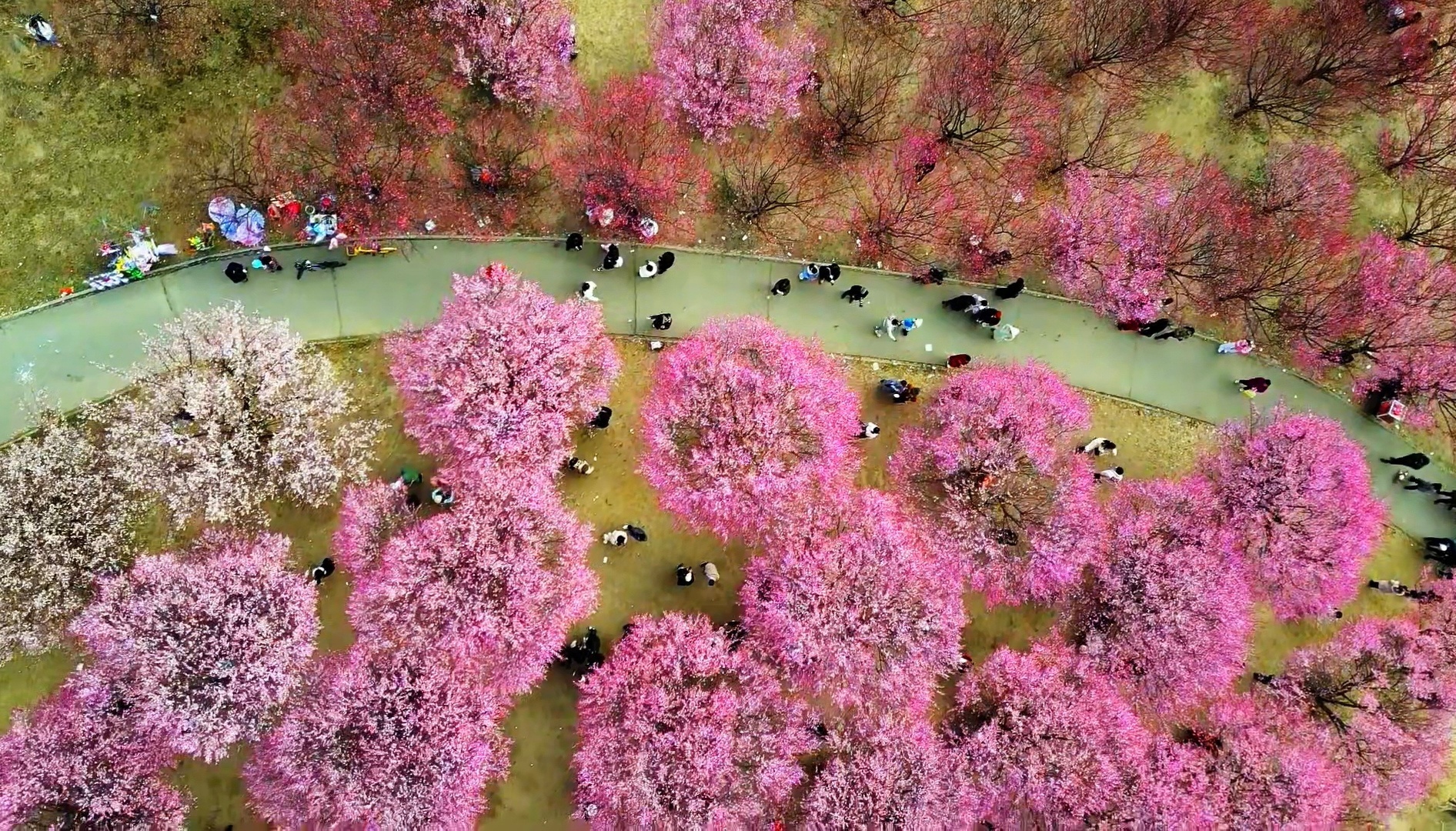 新春赏梅是武汉人的一大乐趣。位于竹叶海公园的梅花坡,因开花时间早,花量集中,成为备受游客追捧的赏梅胜地。