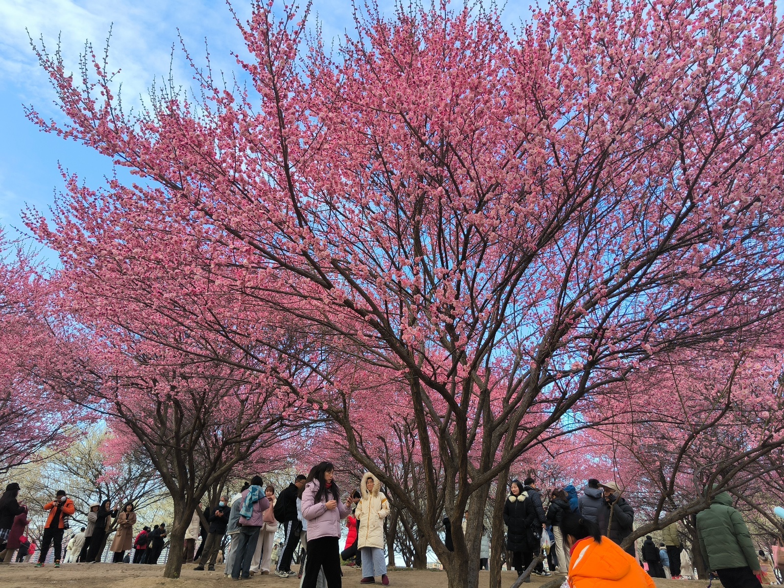“以前这里是一处垃圾场,2017年竹叶海公园建设时,进行了全面的改造。当时,这里种植了300多棵梅花树,包括素白、宫粉和红梅等多个品种。”他说,今年的梅花开得格外繁茂,这里位于山坡,地势比较高,光照很好,是游客们热衷的取景拍照之地。