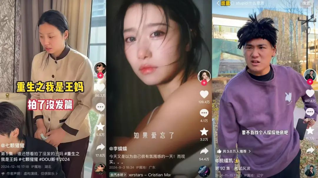 再者,不少账号都是2023年甚至更早之前就已经活跃的老账号,如一人分饰多角的@脱缰凯,2023年就增粉924.9W,还有@七颗猩猩、@李宗恒、@陈翔六点半、@祝晓晗、@张百乔、@李蠕蠕、@李炮儿、@董赤赤、@大圆哥 等,都是近两年来活跃于屏幕之上、很多用户耳熟能详的剧情达人。他们在2024年的又一次亮相,既意味着他们的内容能力仍然能经得起大众的审视,同时也意味着能够“冒出头”来的“新面孔”数量越来越少。