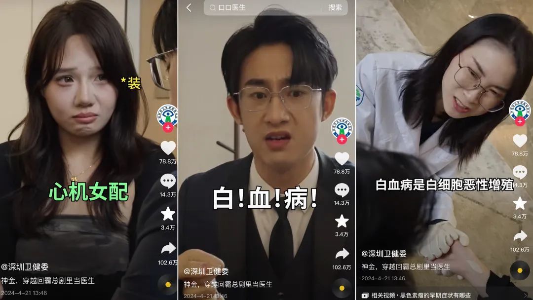 @深圳卫健委,作为一个政务号,却紧跟时下的霸总短剧热潮,成功打造出了集抓马、狗血、搞笑却又实用、有科普意义的霸总系列短剧。