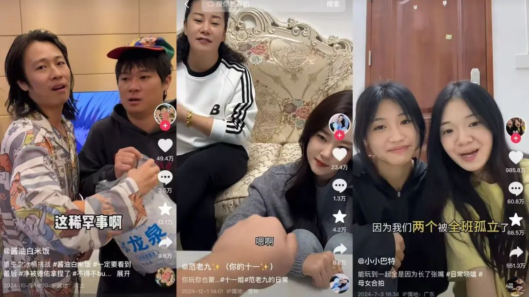 Vlog的账号数量占比则由2023年的5.3%上升到了今年的7.3%。围绕着家庭日常、乡村生活、夫妻/情侣日常、工作日常等,越来越多的创作者加入了记录生活的队伍中,并通过展现不同的生活侧面吸引了不同的受众群体。如: