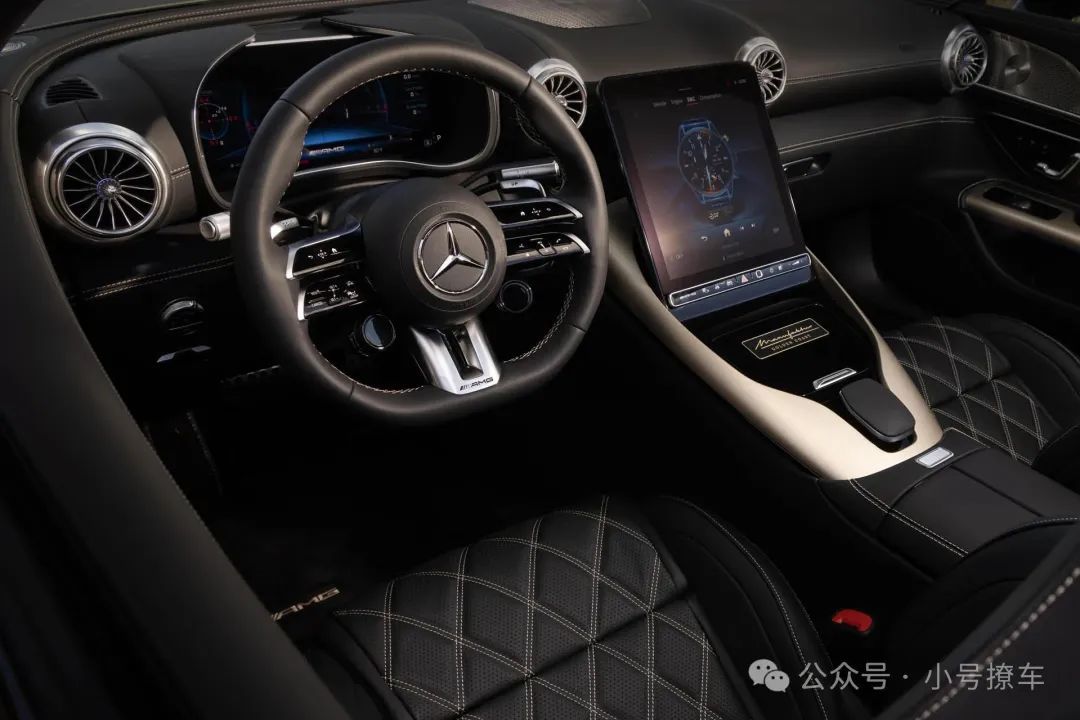 内饰方面,新车提供有三幅式多功能方向盘、全液晶仪表盘、垂直布局的中控屏以及电子怀挡,配色方面以配色为主,辅以金色饰板进行装饰,操作台部分还设计有专属限量标志。空调出风口采用了家族化的飞机涡轮引擎造型,有着比较强的档次感。