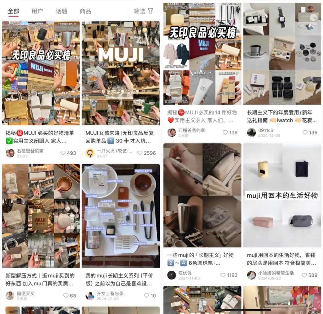 在小红书上,你能找到多篇文案中带有“长期主义”“实用主义”的无印良品笔记。有人说它从无印良品买的马克杯、棉麻手提包、睫毛夹、黏毛滚筒都用了两年以上,有人会不断购入它洗发水的补充装,还有一位消费者告诉我们,无印良品的懒人沙发陪了她近十年,她租的房子换了好几个,沙发却一直都还在。