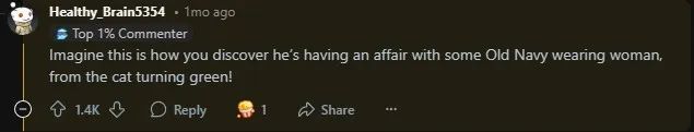 “要是通过这一抹绿色,发现老公的和一个穿Old Navy牛仔裤的女人偷情.....那就好玩了。”