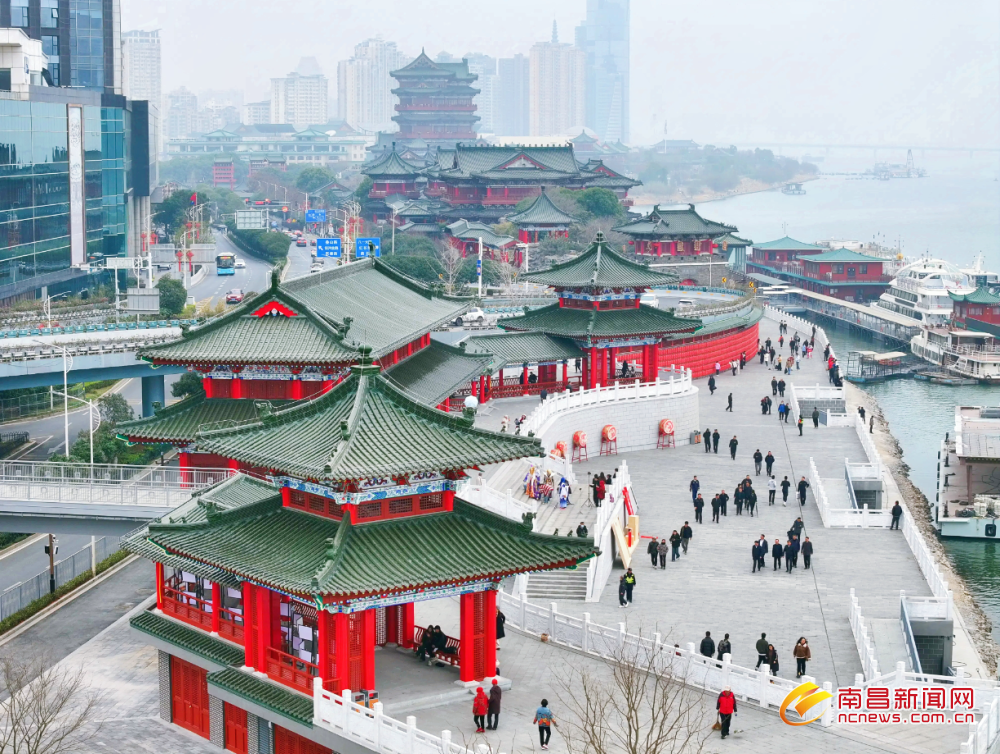 春节期间,在滕王阁景区北扩区域,众多市民游客在此游览“打卡”拍照,感受历史和人文之美。滕王阁景区“还江于民、还岸于民、还景于民”及北扩工程于今年元旦投入使用,3公里长的黄金“海”岸线形成,成为市民游客共享历史人文与自然之美的场所,进一步提升城市文化品质,推进我市文旅事业发展。 洪观新闻记者 喻云亮 摄