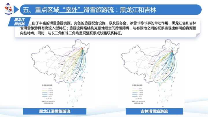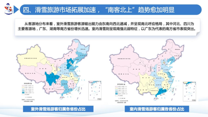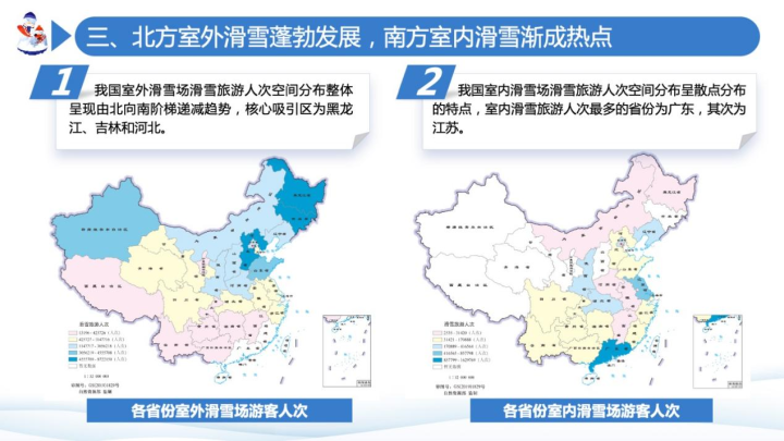 《报告》显示,2024—2025年雪季,我国滑雪旅游市场呈现快速增长的趋势,需求不断攀升,室外滑雪和室内滑雪旅游需求均表现出强劲的增长势头。从目的地来看,室外滑雪旅游的游客空间分布整体呈现由北向南递减的趋势,黑龙江、吉林和河北成为核心吸引区。与此同时,室内滑雪旅游需求呈散点分布,其中,广东省的室内滑雪旅游人次最多。此外,室外滑雪旅游客源地呈现由东南向西北递减的空间格局,而室内滑雪旅游客源地则呈现南强北弱的特征。总体而言,我国滑雪市场的供需格局日益清晰,北方室外滑雪和南方室内滑雪各具特色,市场潜力巨大,前景可期。