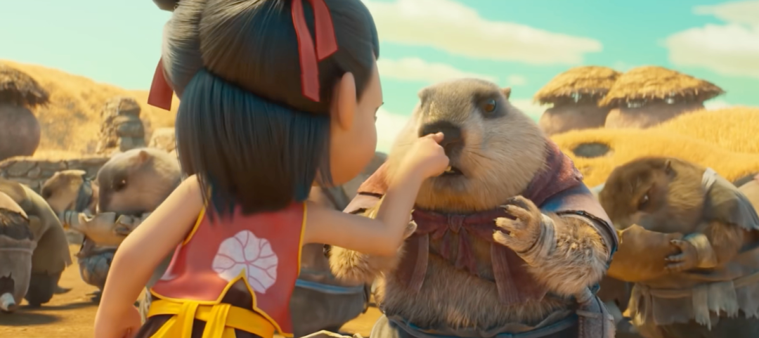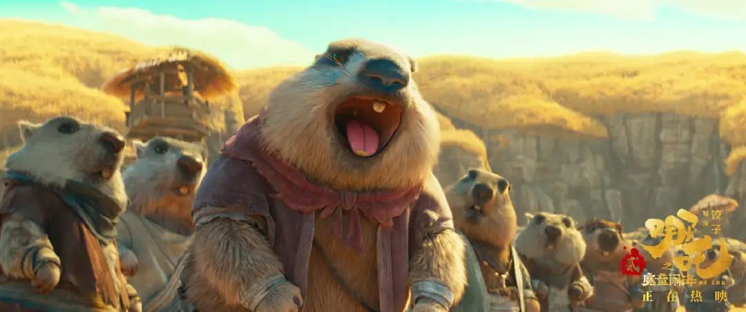 影片中,土拨鼠家族的日常就是像人一样双脚站立集体干活、领南瓜粥,再被从天而降的哪吒戳鼻子。
