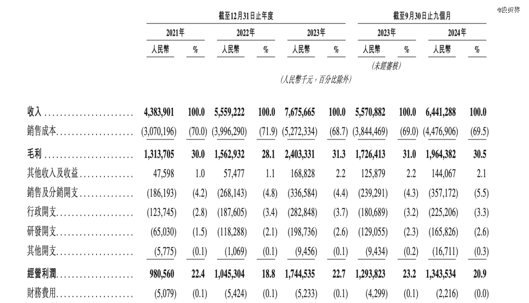 2021年2023年古茗营收分别为43.84亿元、55.59亿元、76.76亿元;2024年前9个月营收64.41亿元,较上年同期增长15.6%。