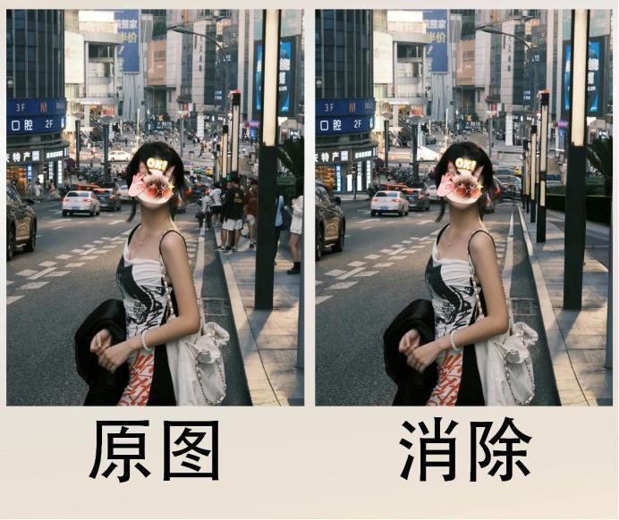 以大家最常用的AI修图为例,在一张照片中,可以将不需要的人物、景物抹去,而不产生丝毫违和感,背后的原理即通过AI大模型生成类似背景进行填充。