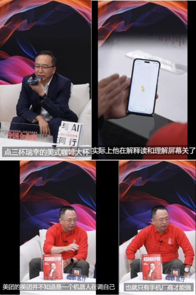 另一个典型的案例是荣耀手机。在荣耀Magic7系列发布前夕,前荣耀CEO赵明参加了360创始人周鸿祎的一档互联网节目,大聊AI重构智能手机。其间,赵明用荣耀新机的AI功能点咖啡,系统直接接管手机,模拟用户手指在屏幕上点开美团外卖开始点单,全程不需要人工干预。