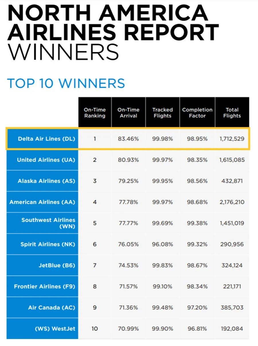 Cirium的榜单基于准点到达率,即航班在预定到达时间的15分钟内到达登机口。Cirium从全球600多个实时航班信息来源收集和整理大量数据,包括已公布的航班时刻表、政府机构、民航局、航空公司、机场和主要航空公司预订系统。