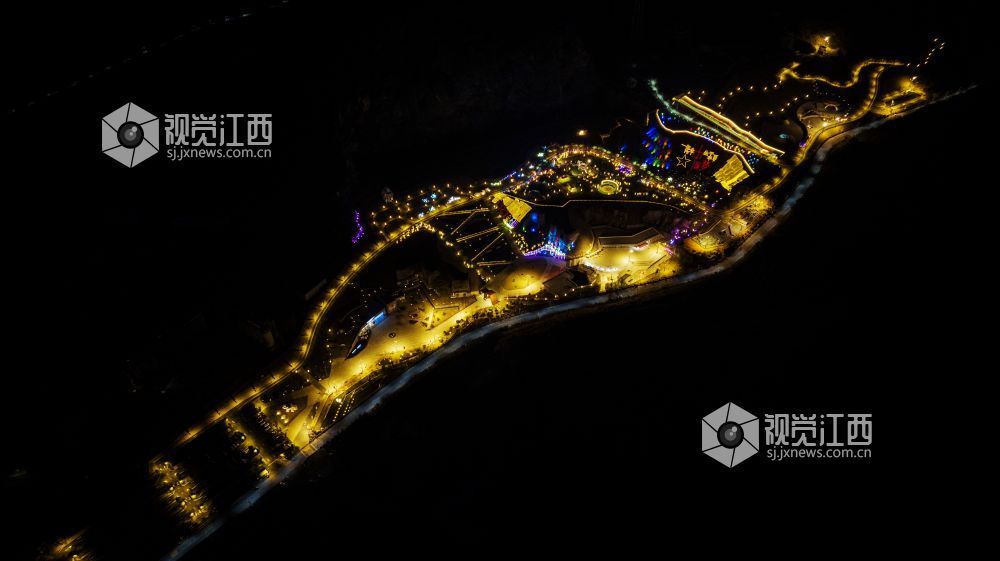 2月11日,航拍江西新余仙女湖区欧里镇金石山矿山公园夜景如画,如梦如幻,吸引了许多游客前来游玩观赏。 金石山矿山公园原是一片废弃矿山,裸露的岩石、漂浮的灰尘、连片的矿体满目疮痍,伤痕累累。近年来,江西新余牢固树立绿水青山就是金山银山的理念,充分发挥市场在资源配置中的决定性作用,在对金石山废弃矿山进行生态修复时,导入旅游开发项目,开发了包括悬崖漂流、悬崖蹦极、射击公园、彩虹滑道、狂野穿梭、矿洞探索等在内的24个丰富多样的旅游项目。 视觉江西 郭锋杰 摄
