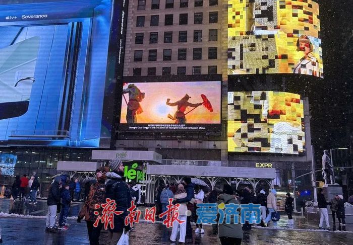 近日,商河鼓子秧歌宣传片成功登陆纽约时代广场,在纽约时代广场户外大屏全天循环播放,吸引了众多外国友人驻足观看。