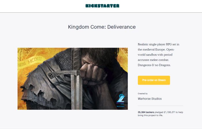 2013年,战马拿着《天国:拯救》参加了一场市场调查,结果表明会有玩家对这款极其硬核的中世纪RPG感兴趣。于是,在没有退路的情况下,Daniel决定要让游戏登上Kickstarter众筹。据《天国:拯救》的首席设计师Viktor Bocan回忆,“一天,Daniel突然说,要不我们明天都去自杀,要不我们就上Kickstarter。”