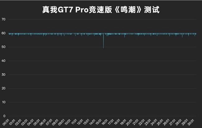 不过如今《原神》已经是牛夫人了,我们也测试了同样是开放世界游戏《鸣潮》,同样开启最高画质,关闭AMD FSR和自动调节,可以说是拉满了。经过半个小时的游戏测试,平均帧率59.82,流畅度99.91,抖动率仅0.32,最高温度40.5℃,尽管《鸣潮》更新,但在真我GT7 Pro竞速版高性能移动平台和11480mm²全局冰芯散热系统加持下,流畅游戏轻松加愉快。