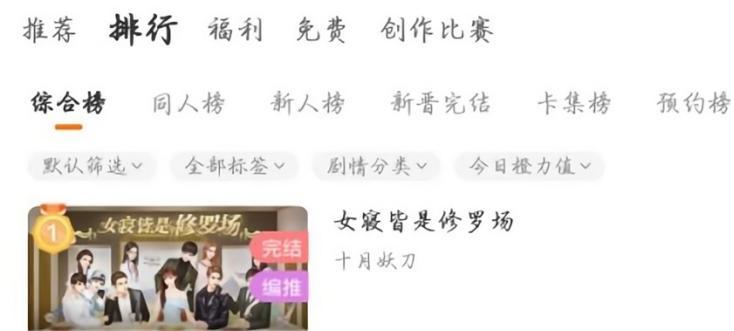 近日,橙光游戏平台内的综合排行榜上,《女寝皆是修罗场》(以下简称《女寝》)这款早在2018年就已经完结的游戏再度霸占榜首。