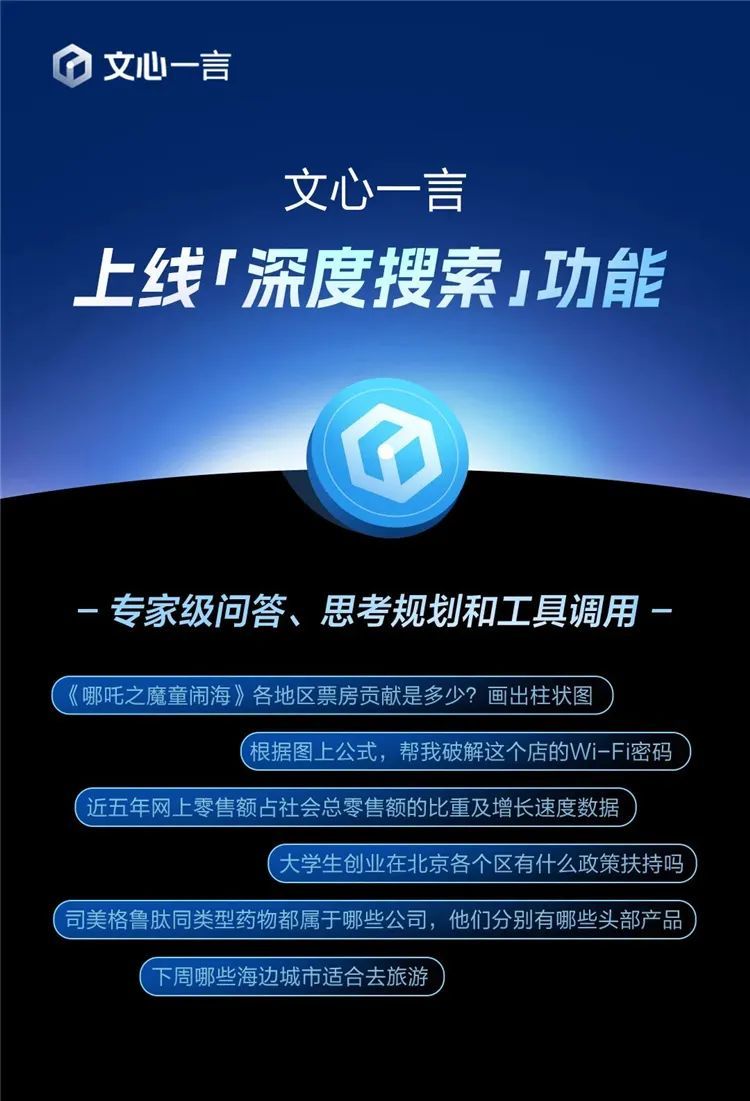 不仅如此,文心一言还从今天开始率先在官网上线深度搜索功能,这项功能同样也会在4月1日起免费对用户开放使用。