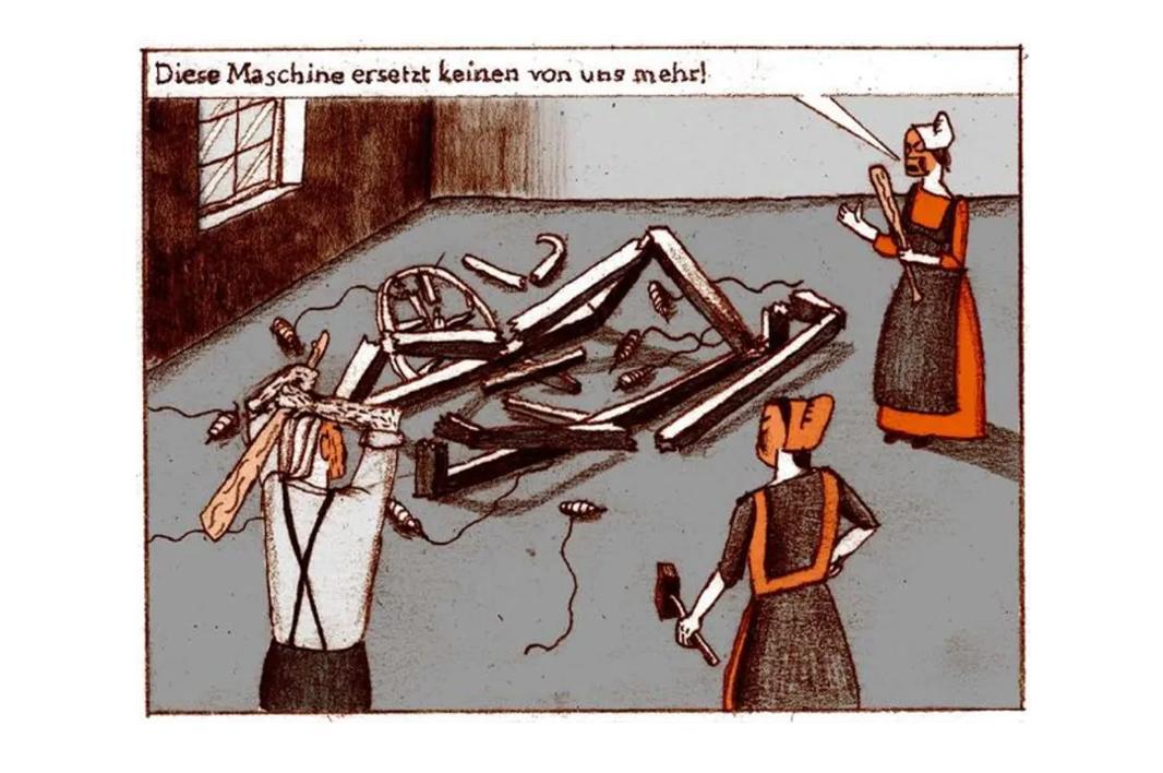 当年第一次工业革命,珍妮纺织机被发明之后,大量纺织工人下岗,甚至引发了到处砸纺织机的「卢德运动」。