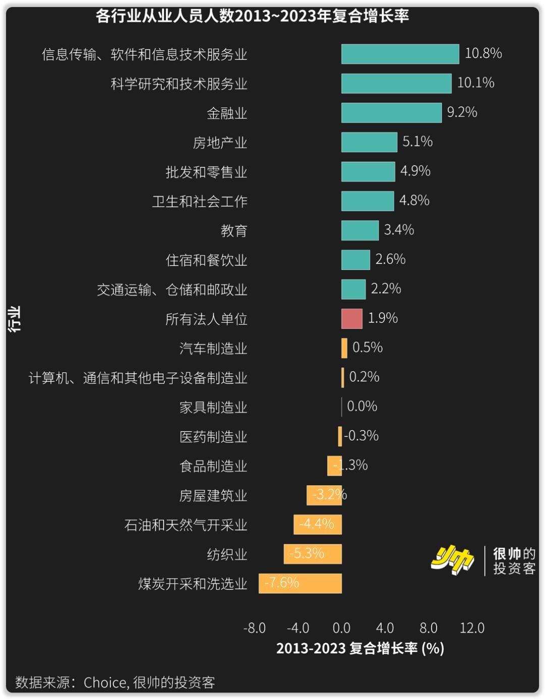 你看仓储搞了那么多仓储机器人,交通运输、仓储和邮政业的从业人员增速还是比整体增速快。