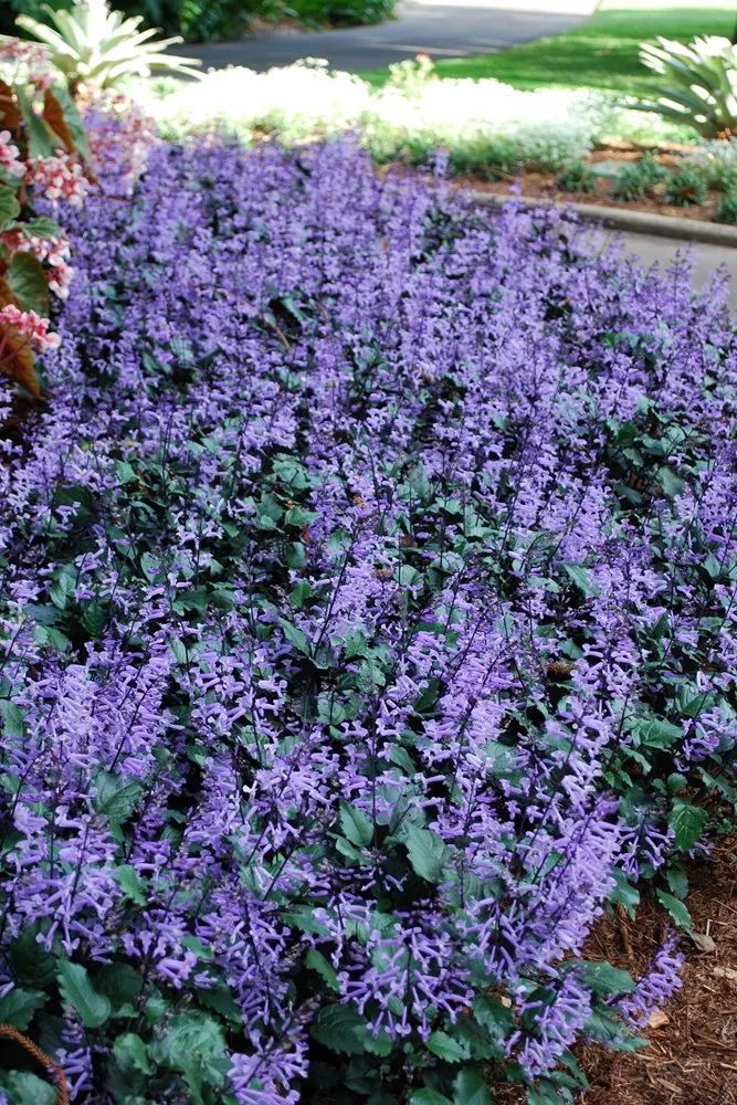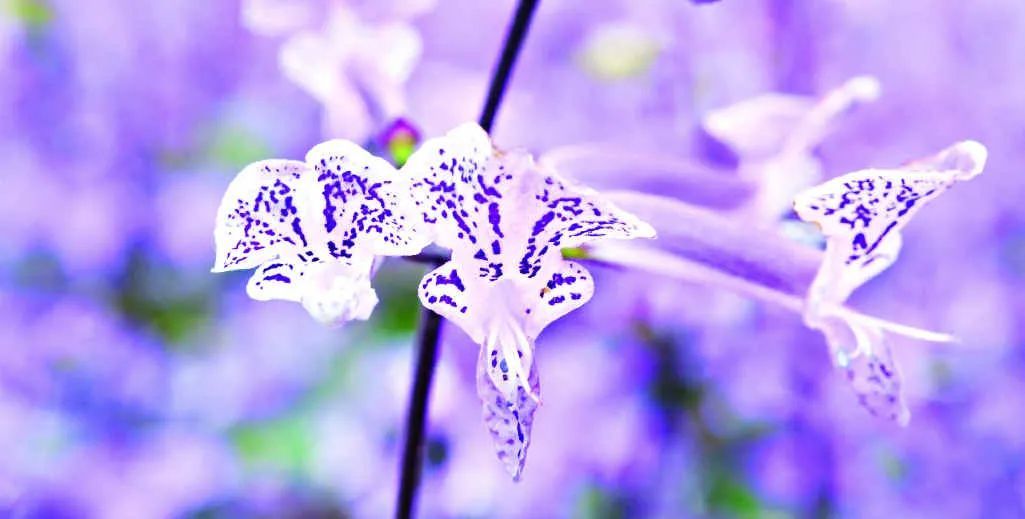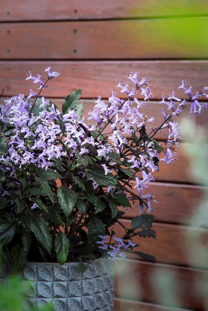 特丽莎香茶菜(莫奈薰衣草:Plectranthus 'Mona Lavender')是南非开普敦的康斯坦博西国家植物园用两个品种杂交培育出来的(母本:Plectranthus saccatus,父本:Plectranthus hilliardiae),它有较长的花冠筒,花色是淡紫色的,花瓣上会有小条纹。在花开爆盆的时候,看起来还是挺震撼的。