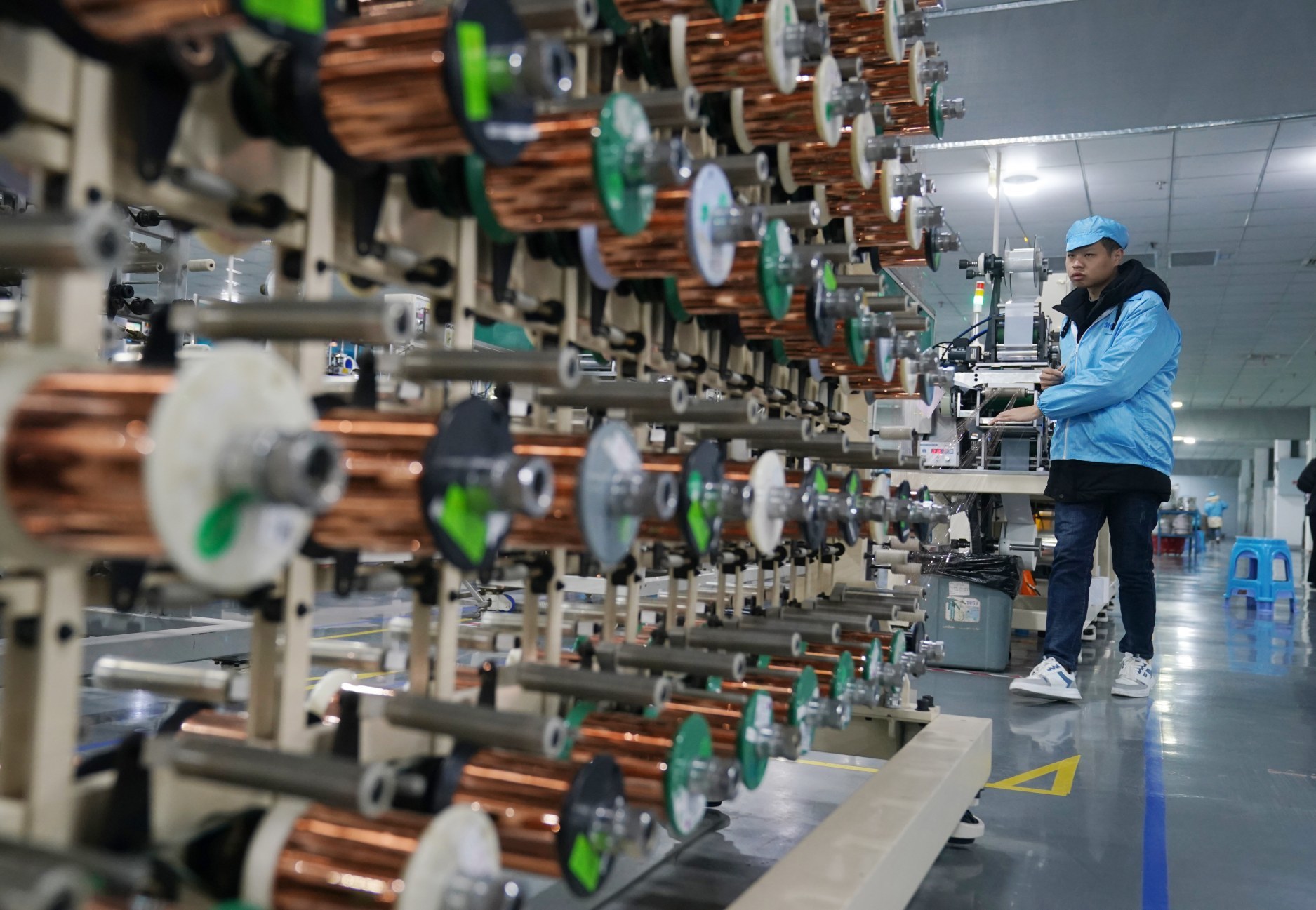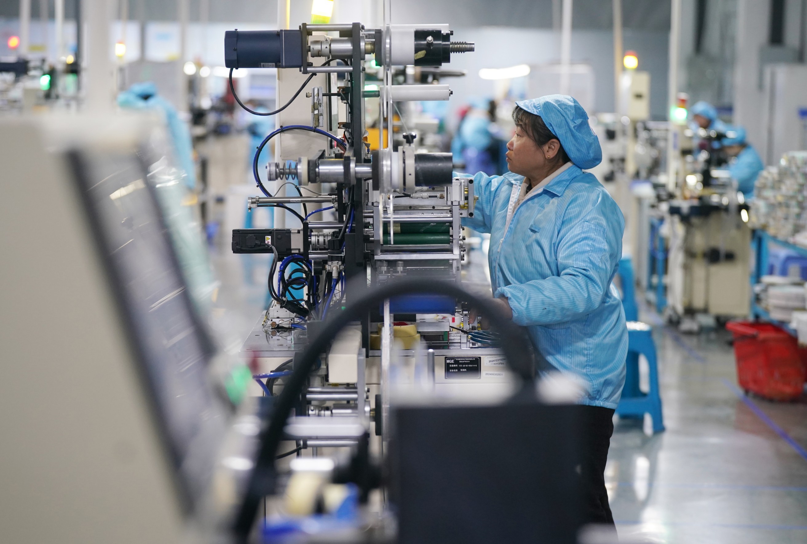 2月10日,在高新区铭基高科电子有限公司5G数据连接线生产车间,工人在生产线上忙碌。该公司生产的5G数据连接线供不应求,年产各类数据线达2亿多条,产品畅销全球数据线缆市场。