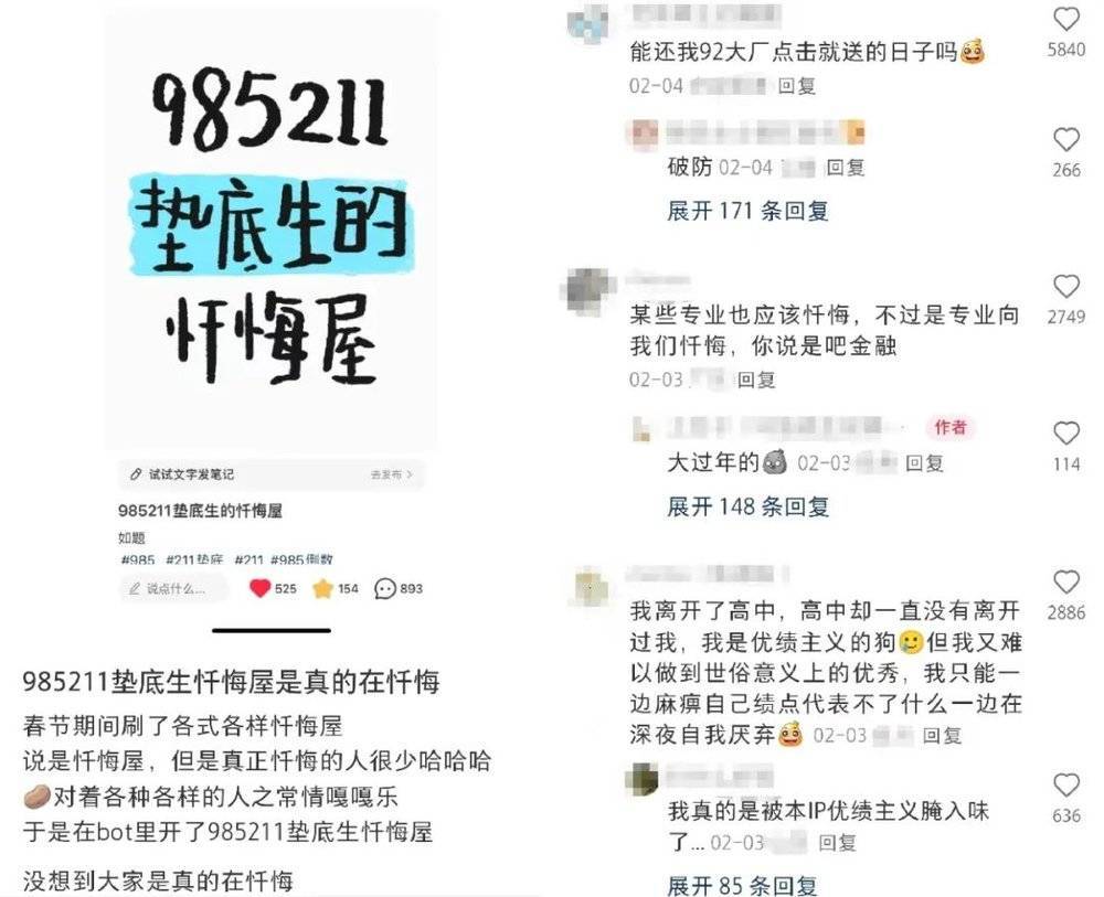 (985、211垫底生忏悔室,来源:小红书@土豆子)