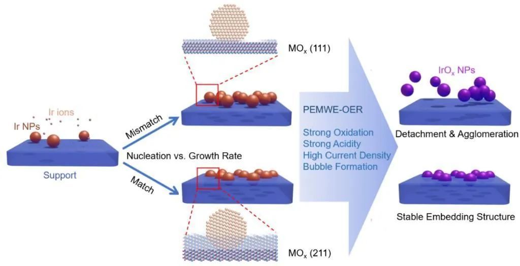 目前,铱和其氧化物是唯一可以在PEMWE阳极的强酸性环境下稳定工作的催化剂,但其高昂的成本和稀缺性限制了其大规模应用。此外,现有的铱基催化剂因催化活性和稳定性有限,尚无法满足未来绿氢产业的需求。