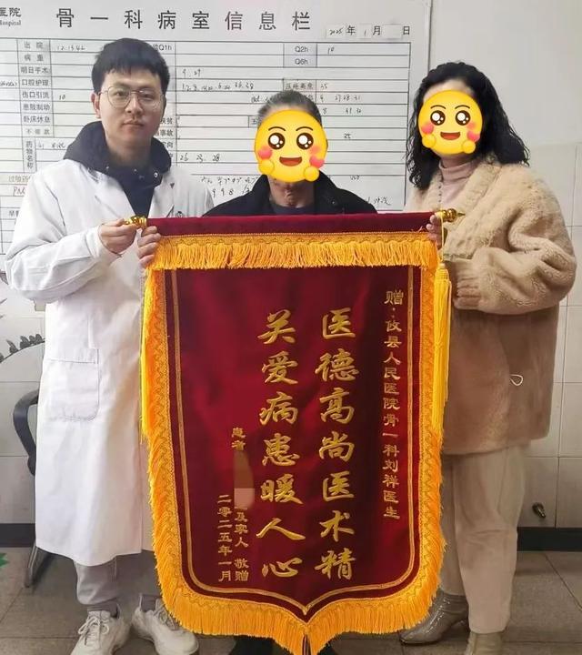 当清晨的第一缕阳光照进骨一科病房,龙大爷手捧鲜红的锦旗缓缓走向医生办公室。锦旗上,“医德高尚医术精,关爱病患暖人心”十四个大字熠熠生辉,这是龙大爷对骨科刘祥医生及全体医护人员的深情致谢。