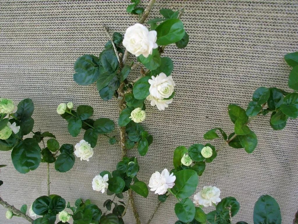 养茉莉花和养月季花是有很多共通之处的,就是如果不修剪,花朵会越来越少,而且植株的形态会越来越散乱,会有很多小分枝低垂下来。