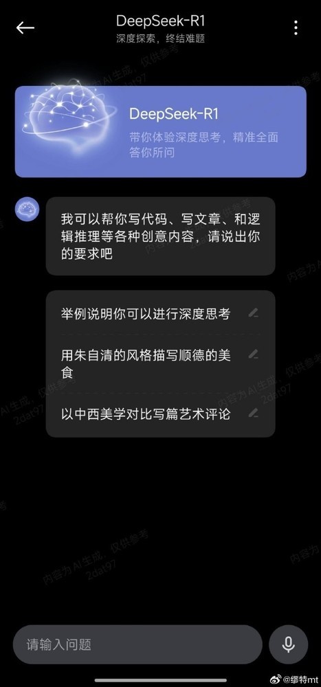 近日在社交媒体上有多位网友表示,小米澎湃OS已经接入DeepSeek,用户只需长按电源键激活超级小爱,再对着超级小爱说“打开深度思考”,即可激活DeepSeek-R1模型。根据图片可以看到,澎湃OS内置的DeepSeek更加擅长写代码、写文章、逻辑推理等创意内容。