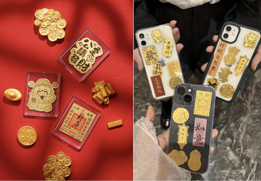 以今年春节爆火的足金手机贴为例,克重普遍在2毫克—0.2克,定价从十几元到数百元不等,装饰性强又能讨彩头,化身年轻人的“招财神器”(更多内容,查看天下网商《19.9元“招财神器”卖爆,年轻人“人手一个”过春节》)。