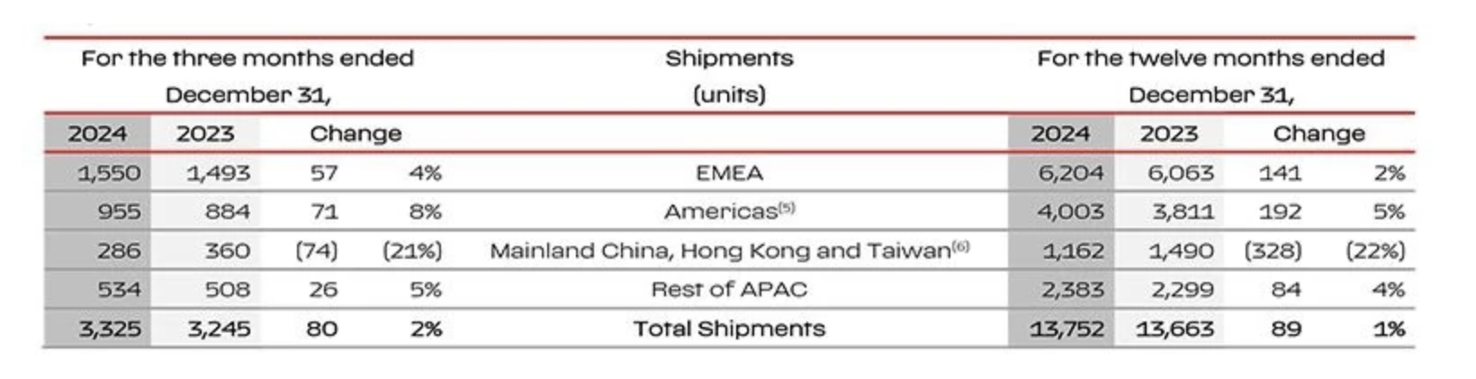 2024年法拉利在不同市场销售表现(图源:企业官网)