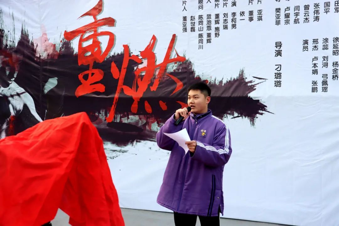 开机仪式由影视艺术部学员涂先翔主持,校党建指导员苏健森代表校方致辞。他首先对《重燃》剧组的到来表示热烈的欢迎。他说,小龙武校建校四十多年来,一直非常重视武术和艺术的有机融合,成立了山川影视拍摄基地和影视艺术部,在全国众多武校中独树一帜,形成了鲜明的办学特色。先后培养了释小龙、蒋璐霞等众多影视明星,拍摄或参与拍摄了数百部影视作品。武术人讲究"拳不离手",影视人贵在"镜头见真章"。希望同学们珍惜机会,把这次拍摄当作检验功夫的擂台,一切行动听指挥,把训练场、练功房的汗水,变成荧幕上的光影,把自己最好的武艺和学校良好的形象,展现在剧组面前和屏幕中。