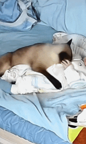 让她没想到的是,在辛苦的带娃过程中,家里的暹罗猫哈娜居然帮了不少忙…