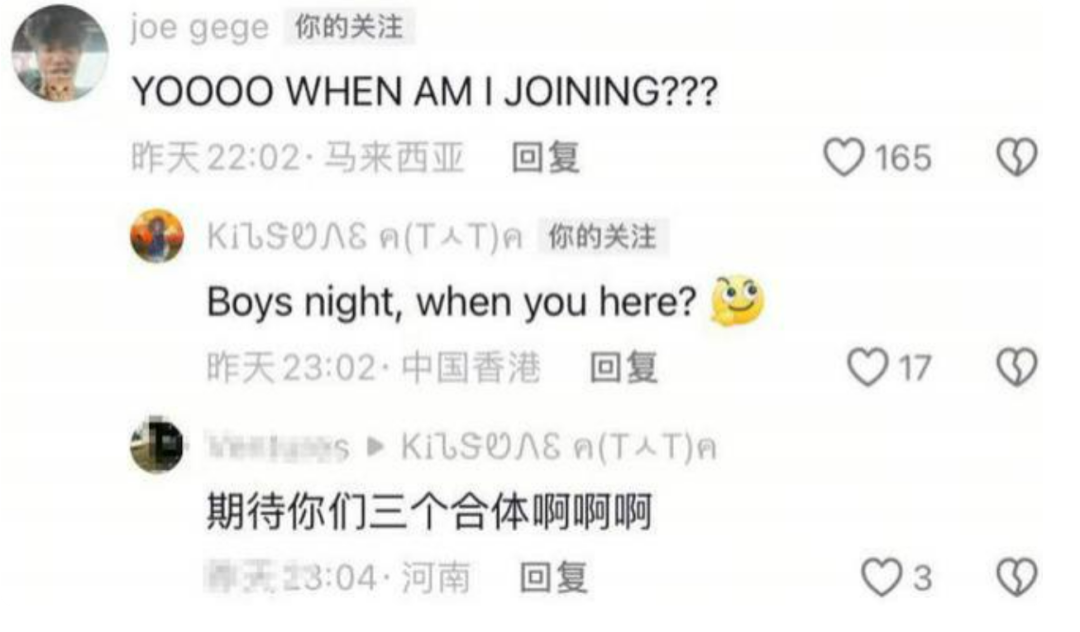 从两个人聊天记录来看,他们约着放学后见面。而在评论区,当年一起参与过节目录制的曹格儿子Joe看到他们互动便留言称要加入他们的聚会。