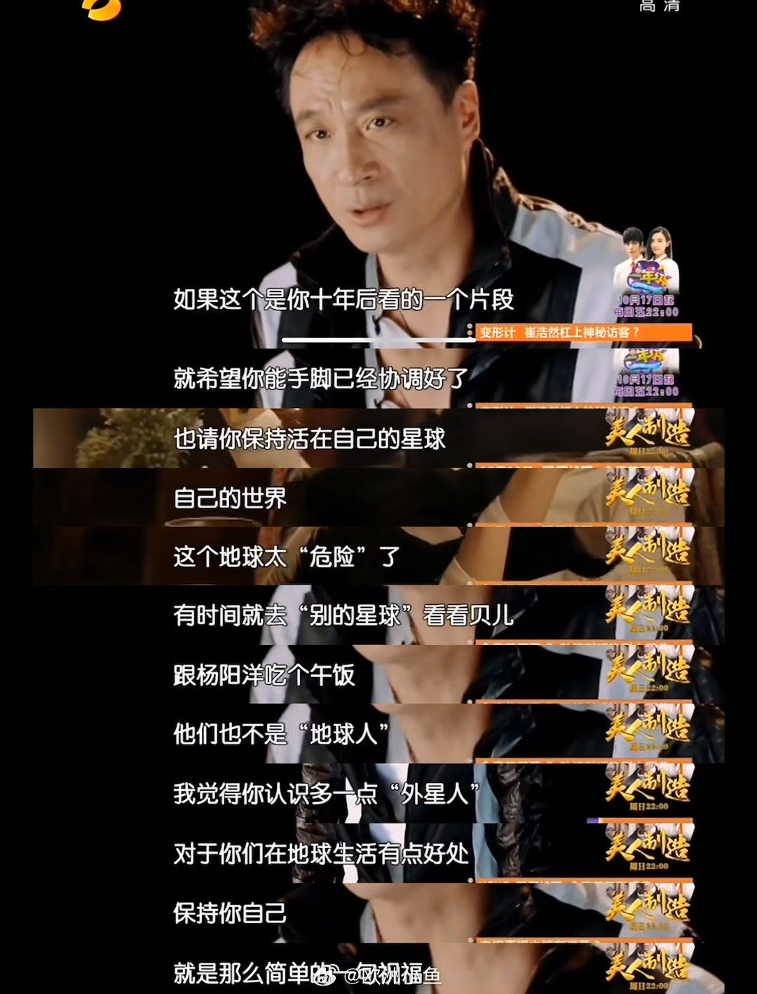 有网友还翻出了十年前费曼父亲吴镇宇在《爸爸去哪儿2》节目中发表的一段对儿子的“神预言”祝福,当时吴镇宇称:如果这是你十年后看的片段,希望你手脚已经协调好了,有时间跟杨阳洋吃个午饭。