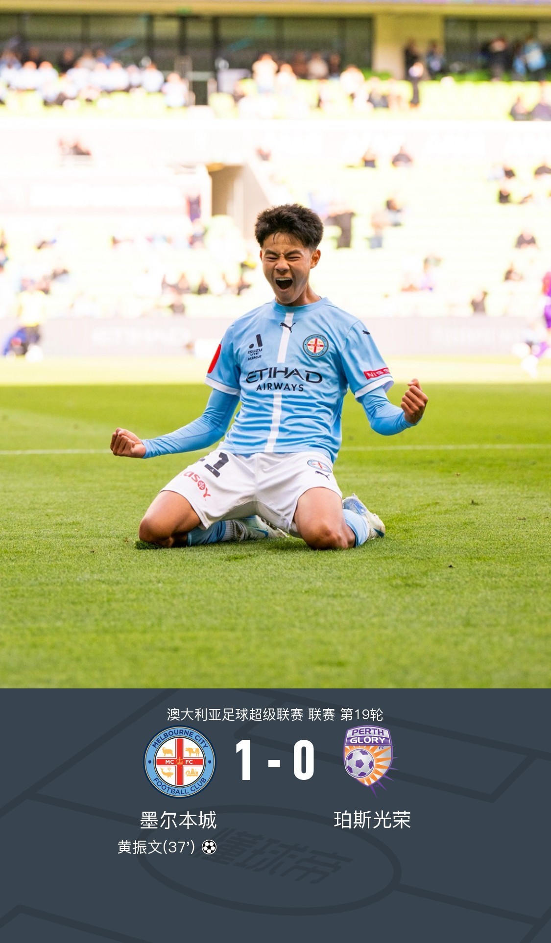 北京时间2月15日澳大利亚足球超级联赛 联赛 第19轮,墨尔本城主场对阵珀斯光荣。墨尔本城华裔小将黄振文完成破门为球队攻入制胜球。最终比分墨尔本城 1-0 珀斯光荣。
