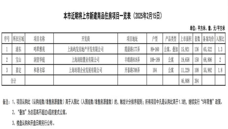 上海市房地产交易中心官方平台“网上房地产”今天公示了近期将入市的3个楼盘,共394套房源,总面积4.68万平方米。