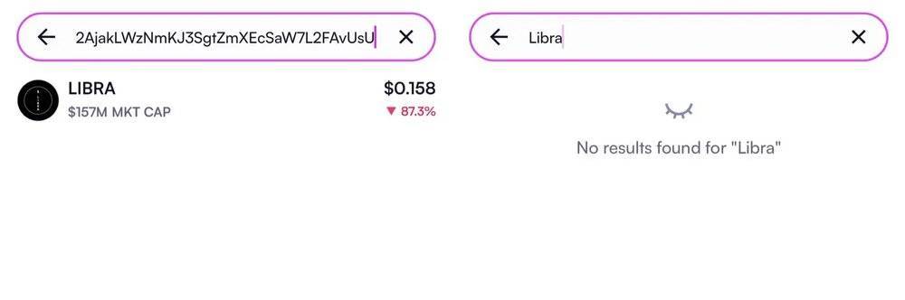 聪明人从 TRUMP 学会了第一时间在 Moonshot 查 LIBRA 有没有上 Moonshot,发现能搜到合约后,是很多聪明钱敢于重仓的原因。但通过合约搜到的并不是真上了 Moonshot,几天前,Moonshot 修改了应用规则,项目可以去 Moonshot 登记,就可以通过合约地址搜到,只有在 Moonshot 手动搜代币名称,如果显示才是真上 Moonshot。